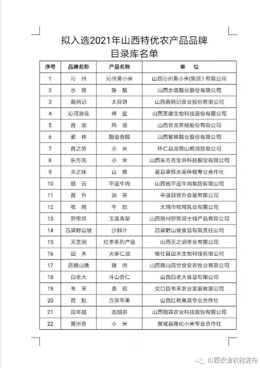 附件:擬入選2021年山西特優(yōu)農(nóng)產(chǎn)品品牌目錄庫名單